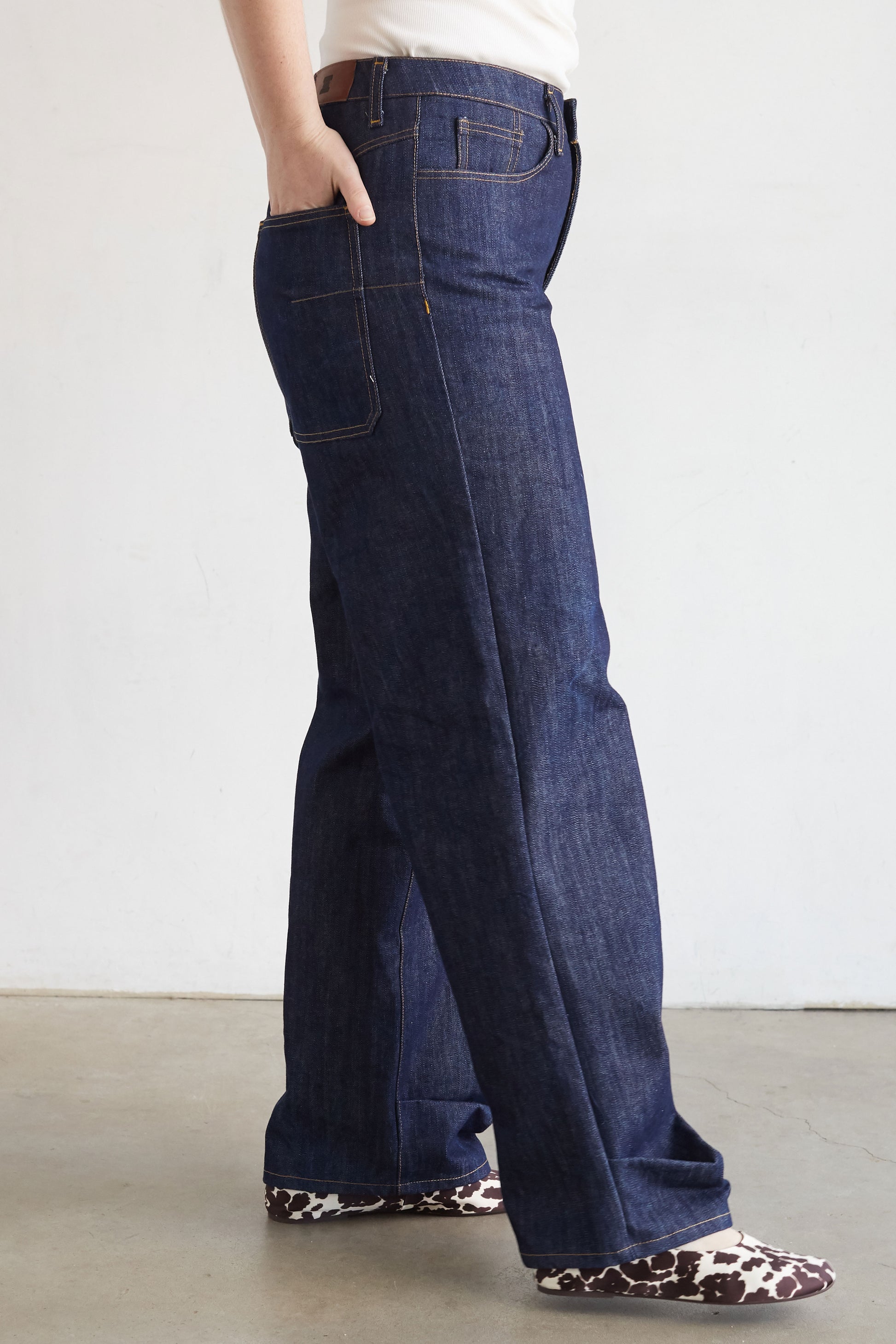 The Dart Side Jeans are designed for non-stretch woven denim fabrications, although you can use a variety of bottom weight fabrics! Denim fabric is made using a twill weave which provides strength and flexibility. Due to the easeful vibe of the design, using a softer, more worn-in denim will showcase the puddle effect of the hem and lend itself well to the overall aesthetic of the silhouette. If you prefer a more structured appearance, choose a more rigid denim and embrace the architectural effect that fabric choice will create throughout. Also, the more you wear rigid or raw denim, the more it will relax and develop a patina that reflects your body. Midweight to heavyweight denim is most suitable for The Dart Side Jeans, staying in the 9oz (305gsm) to 13.5oz (458gsm) range. You may also use a stretch denim with a very low amount of elastane, such as 1-2% if you would like that added comfort. Other suggestions for bottom weight fabrics that could work would be corduroy, canvas or twill.